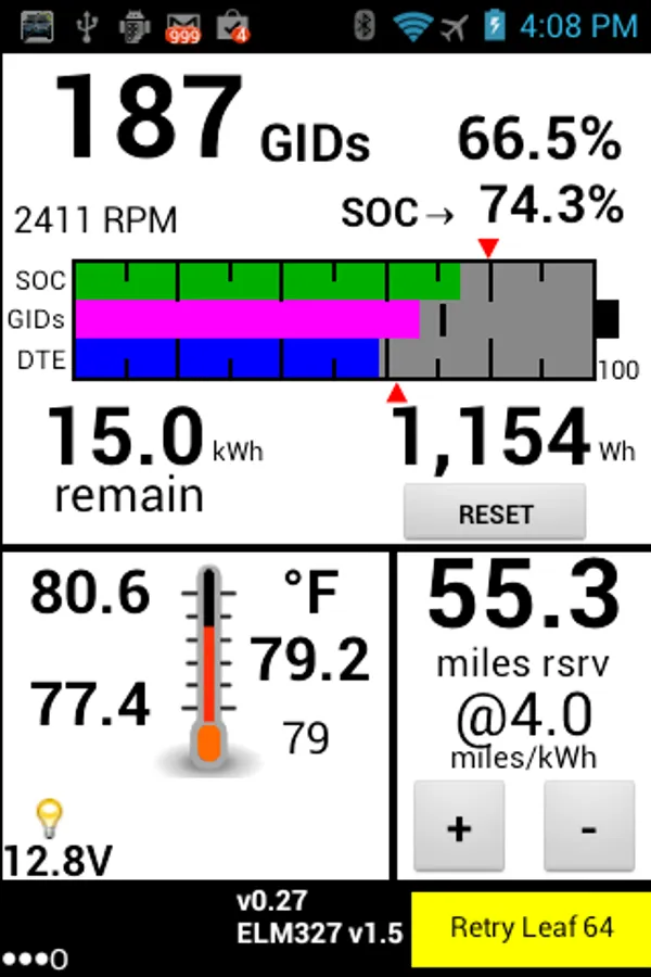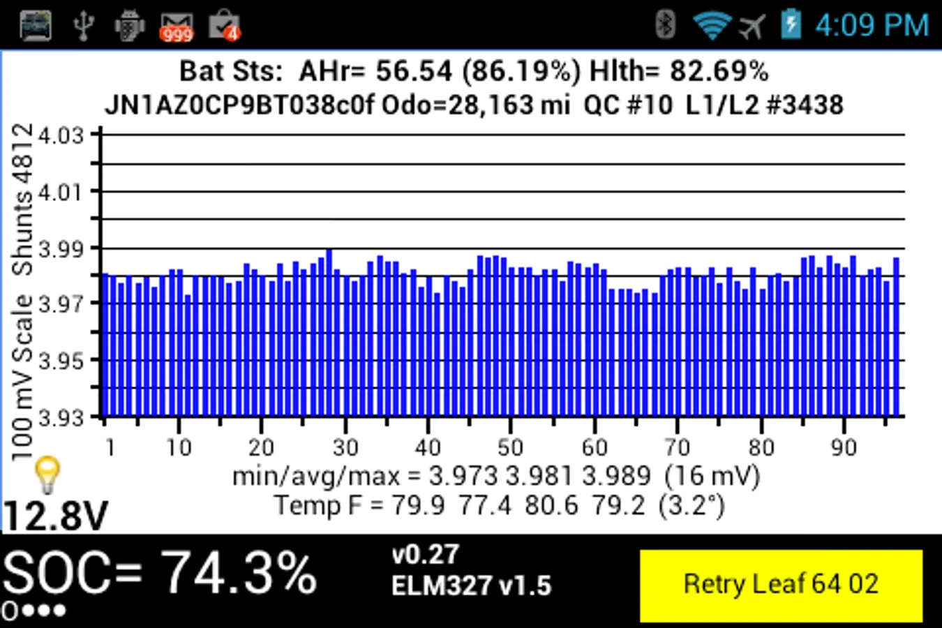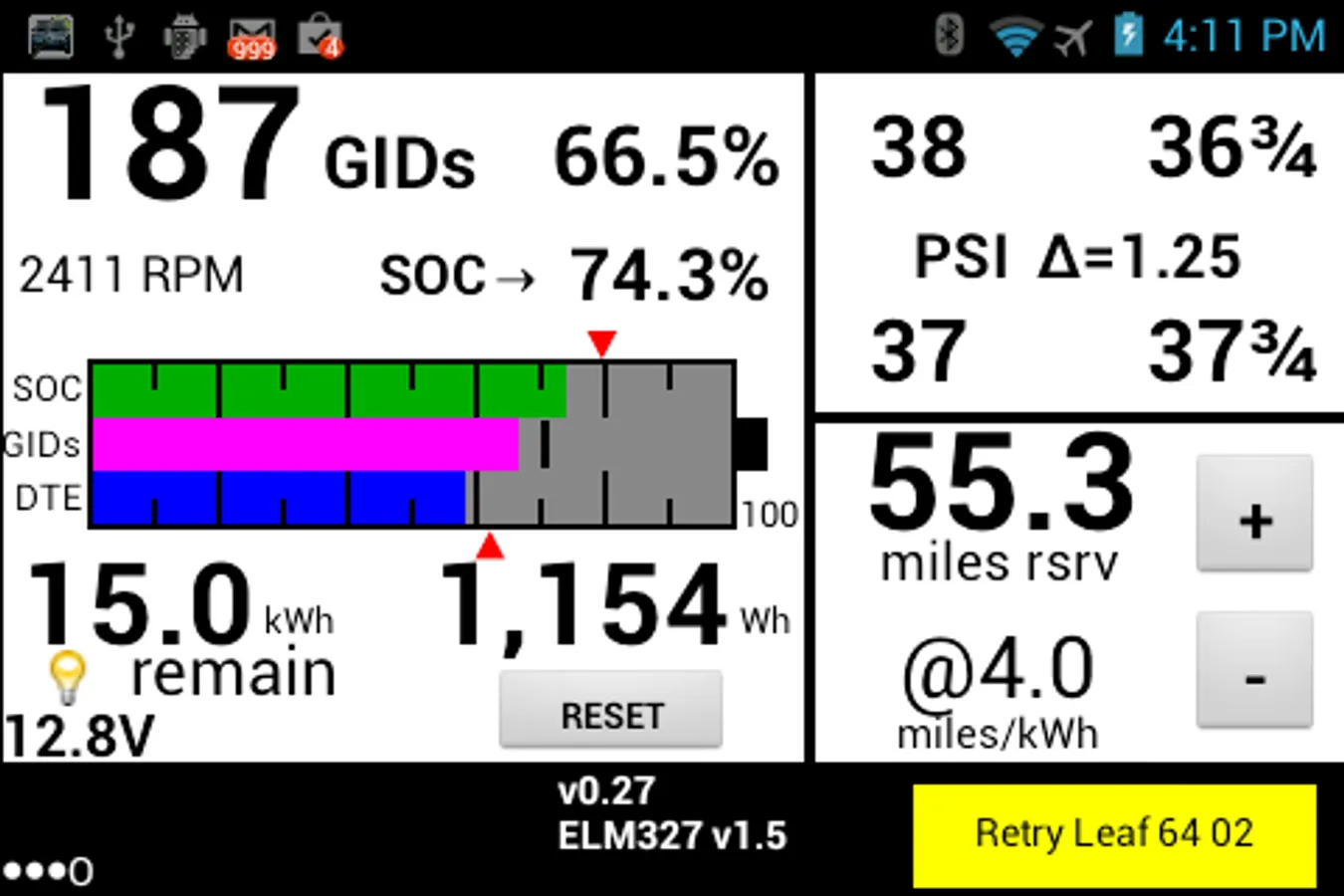 The Leaf Spy application allows anyone with a Nissan Leaf electric vehicle, Android device with Bluetooth and an ELM327 OBDII Bluetooth adapter the ability to monitor their battery and other vehicle information normally visible only to the dealer.