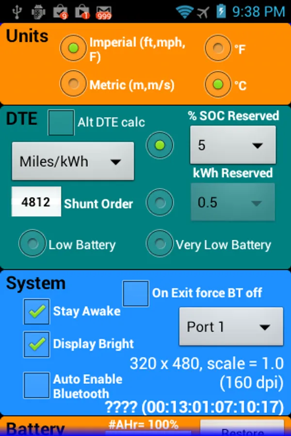 * Battery AHr rating (this will decease with age and is an indication of remaining capacity)