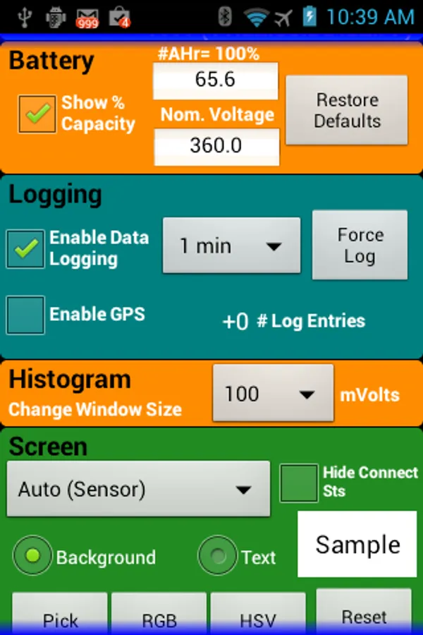 * Logging function that records most data and optionally GPS location to a csv file that can be easily imported into excel.