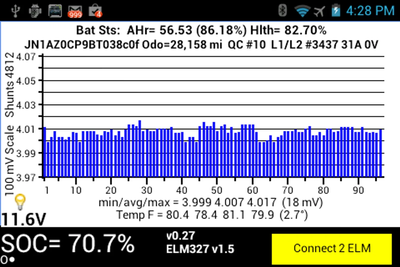 Although Leaf Spy Lite provides an easy and inexpensive way to learn more about your Leaf's battery it also serves as a way to verify if you have a working system before purchasing the full version of the app (Leaf Spy) which display much more information about your Leaf or the Leaf Spy Pro version that adds a number of service type functions.