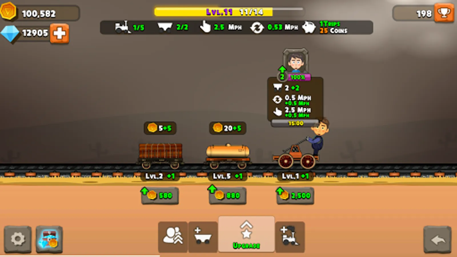 *Upgrade train engines from simple hand cars, steam engines to diesel engines!