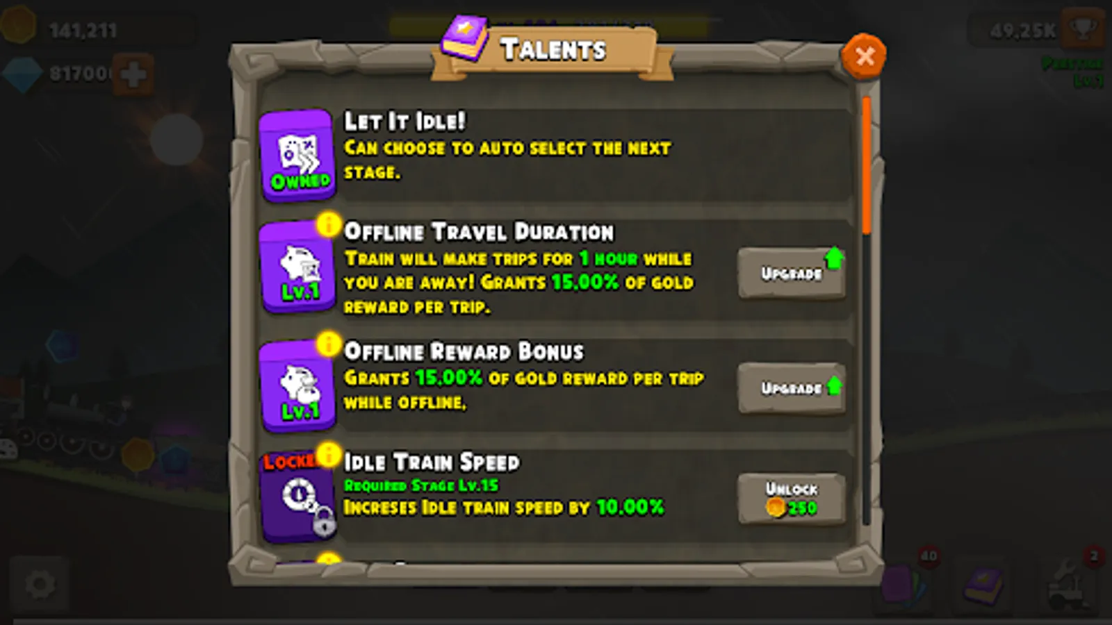 TrainClicker Evolution is a unique idle clicker train game, first of its kind! Start your journey to experience the incredible fun adventure! Tap to move your train, unlock engineers and use their distinctive abilities. Travel from one station to another in beautiful zones to gather gold, earn experience, and upgrade your train!
