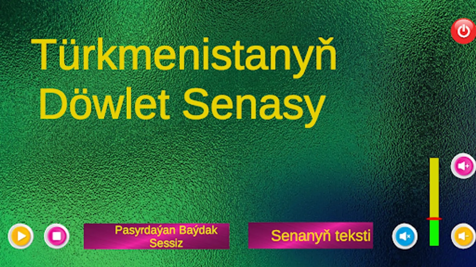Türkmenistanyň Döwlet Senasy. Döwlet edaralary we guramalary, ýerli öz-özüňi dolandyryş edaralary, şeýle hem beýleki guramalar tarapyndan döwlet ähmiýetli dabaraly çäreler geçirilýän wagtynda Döwlet Senasyny ýaňlandyrmaklyga ýardam bermek üçin niýetlenen öýjükli android telefonlarda işleýän programma goşundysy.
