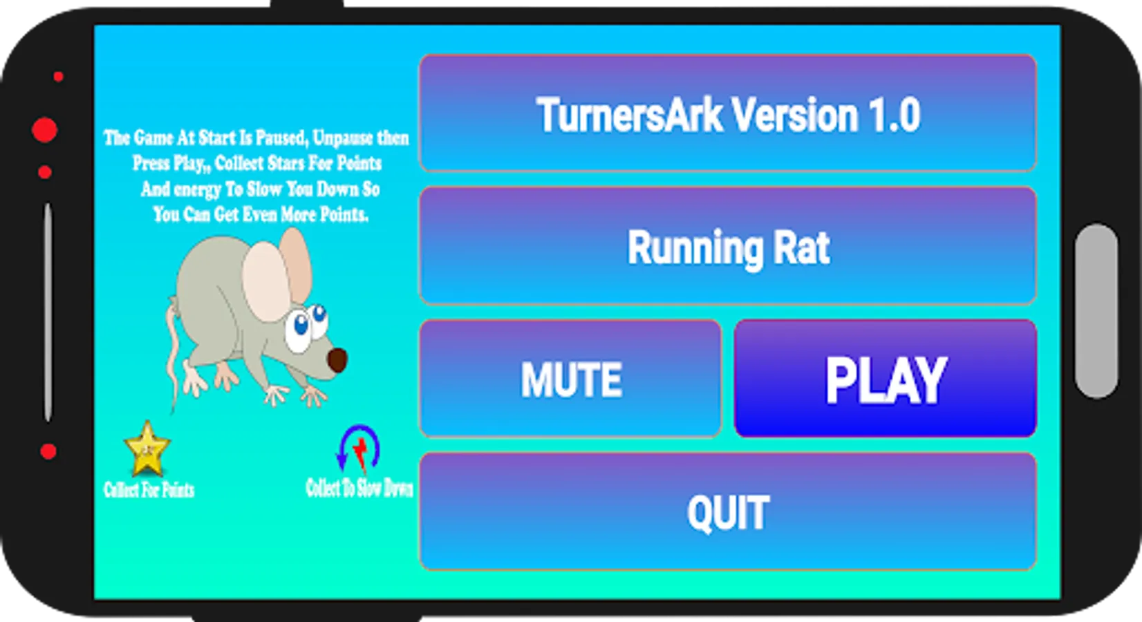 Running Rat is a game to keep you entertained, Keep the rat running to score more points but remember to collect the slow energy otherwise rat really does run very fast, score points by collecting stars along the way, Rat can run and jump and even do a loop the loop as rat jumps from platform to platform, Don't let rat fall or it will be game over.
