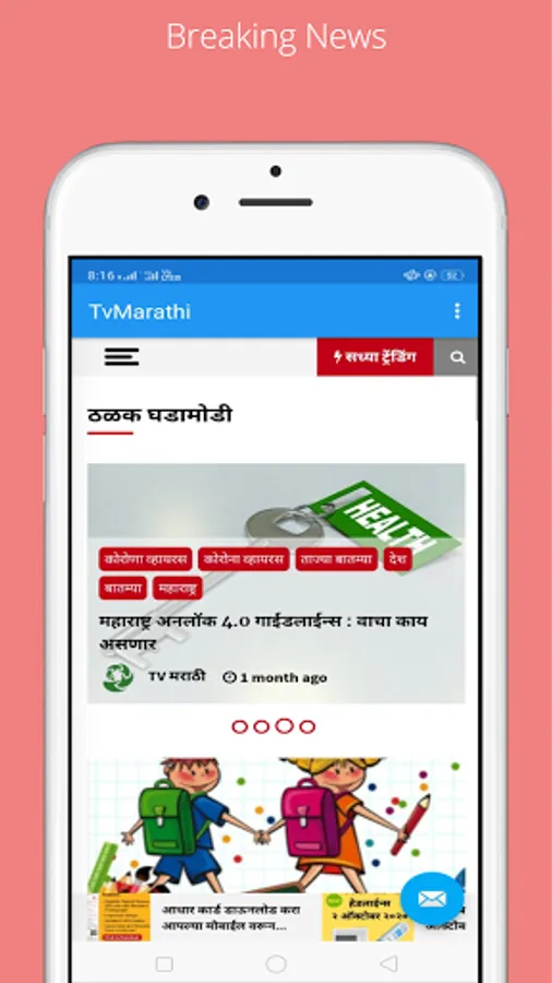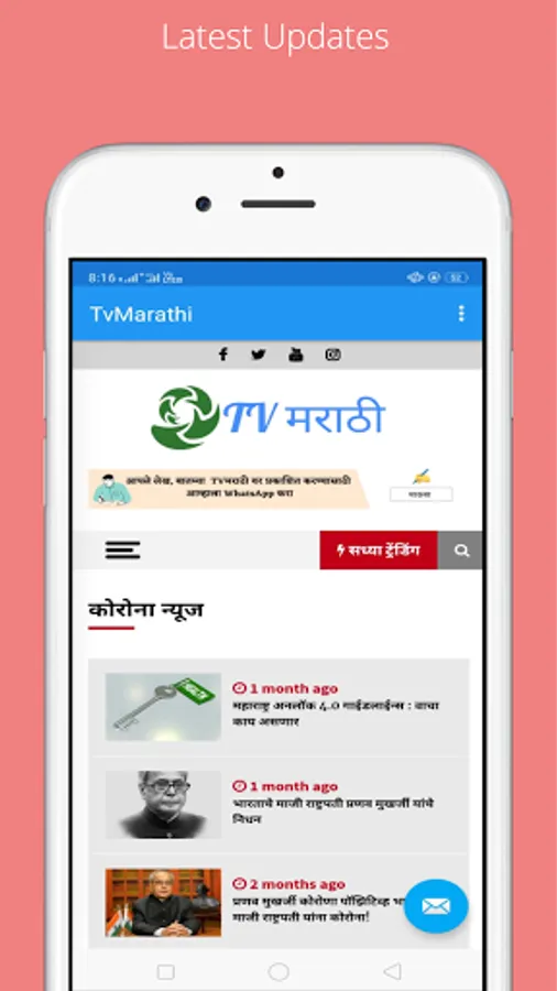 ताज्या घडामोडी, बातम्या, राजकीय, सामाजिक लेख, खेळ, आरोग्य, कायदा, नोकरी शिक्षण, करियर अशा सर्व माहितींनी भरपूर टीव्ही मराठी आताच डाउनलोड करा.