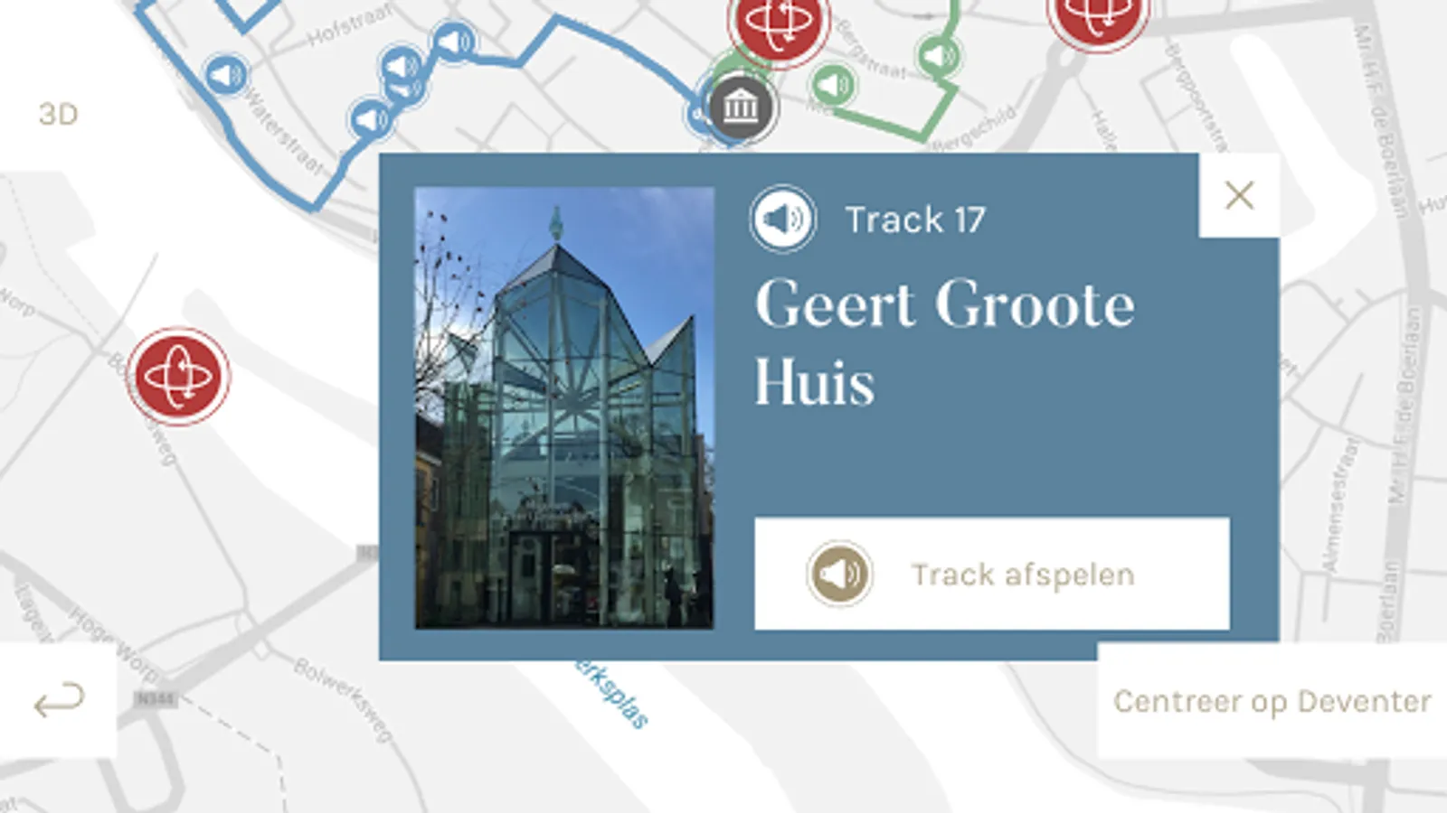 With the app are several historical monuments in the city to see different layers of time; in the past and future. 3Deventer features include a virtual look at Deventer in 1550 where the old double city wall can be seen from across the river IJssel. In the image on the "Points of Interest" for more historical information. Stroll along the historic highs in Deventer two audio tours in 3Deventer and listen to the audio tracks for more background.