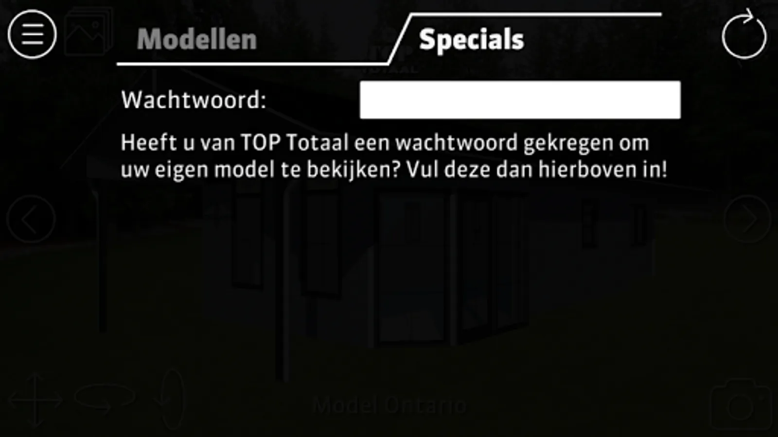 Your own plot includes a TOP recreational chalet or care home? The TOP Total App you will find various models. Watch your favorite 3D or place it on your virtual land.