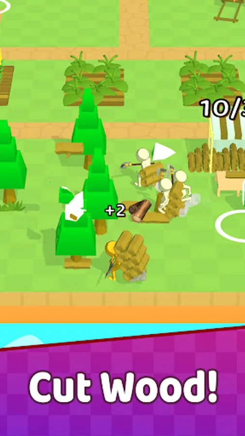 Chop wood to to build buildings and expand your area. Farm different crops and vegetables.