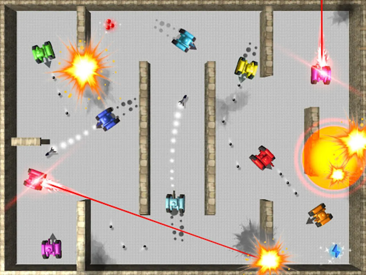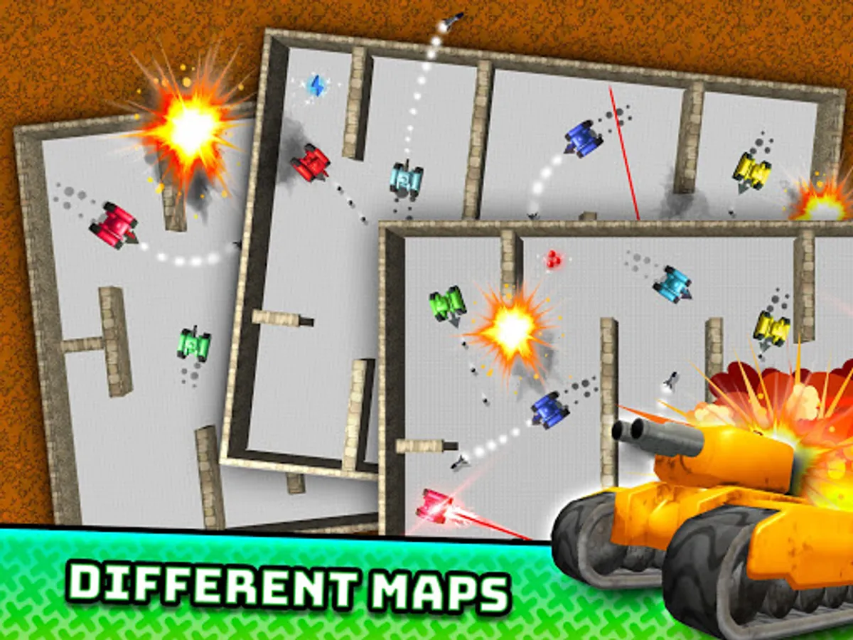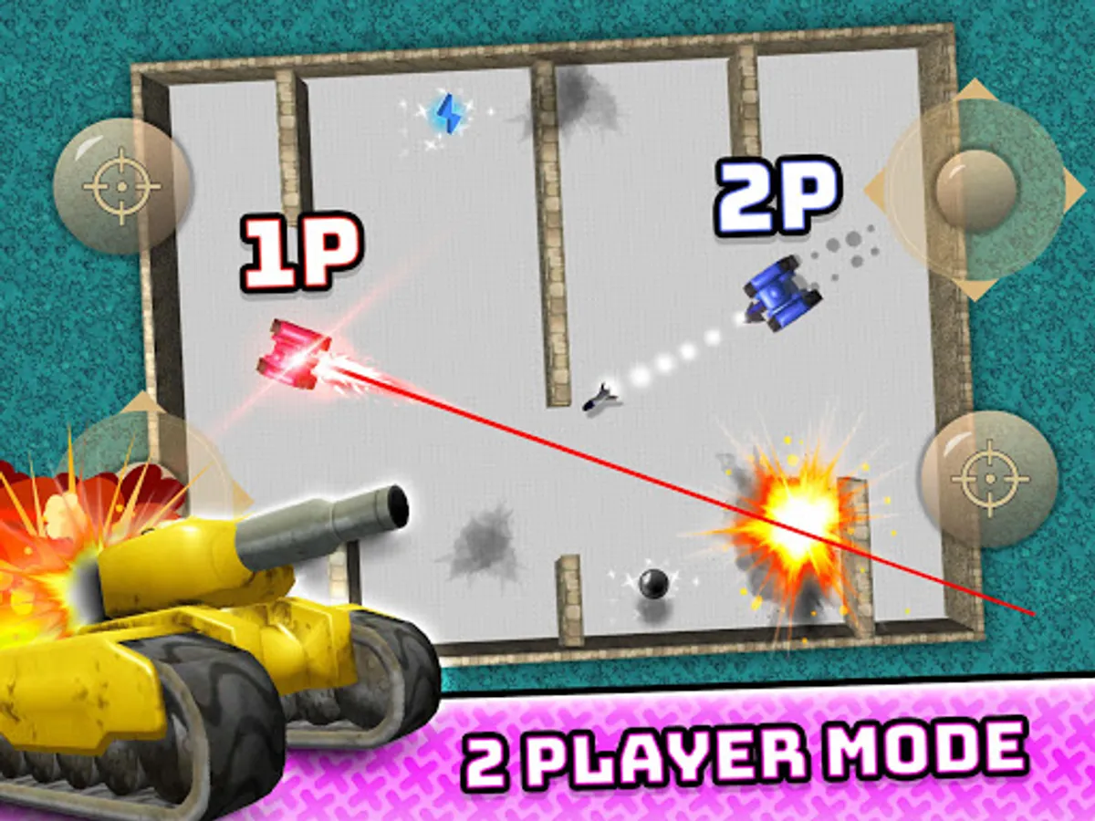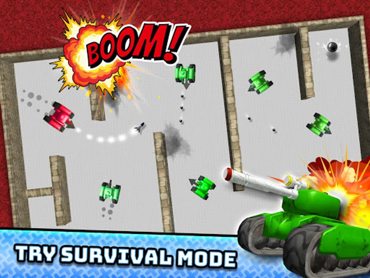 • Tank trouble wars for 2 player and survival modes for 1 player.