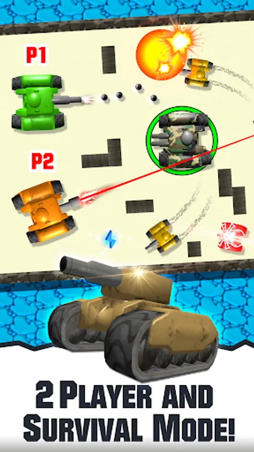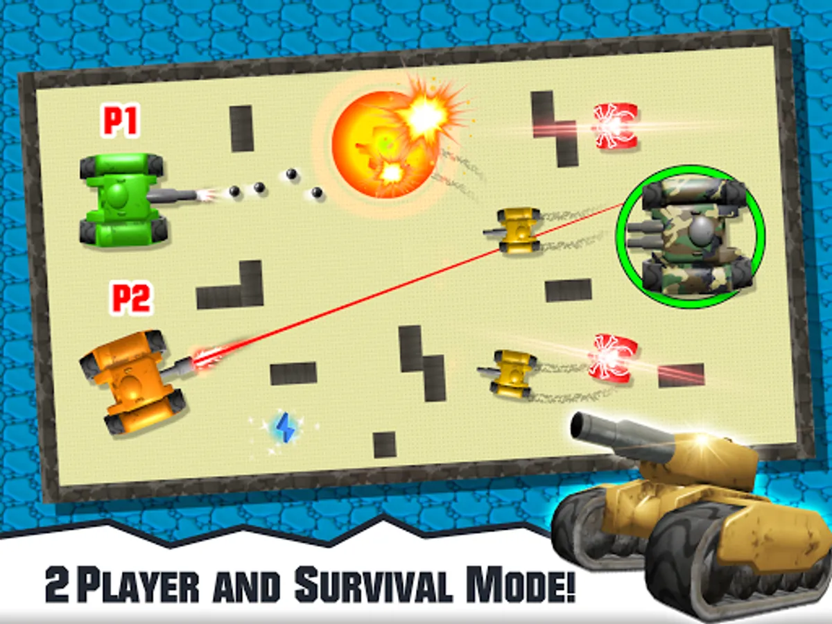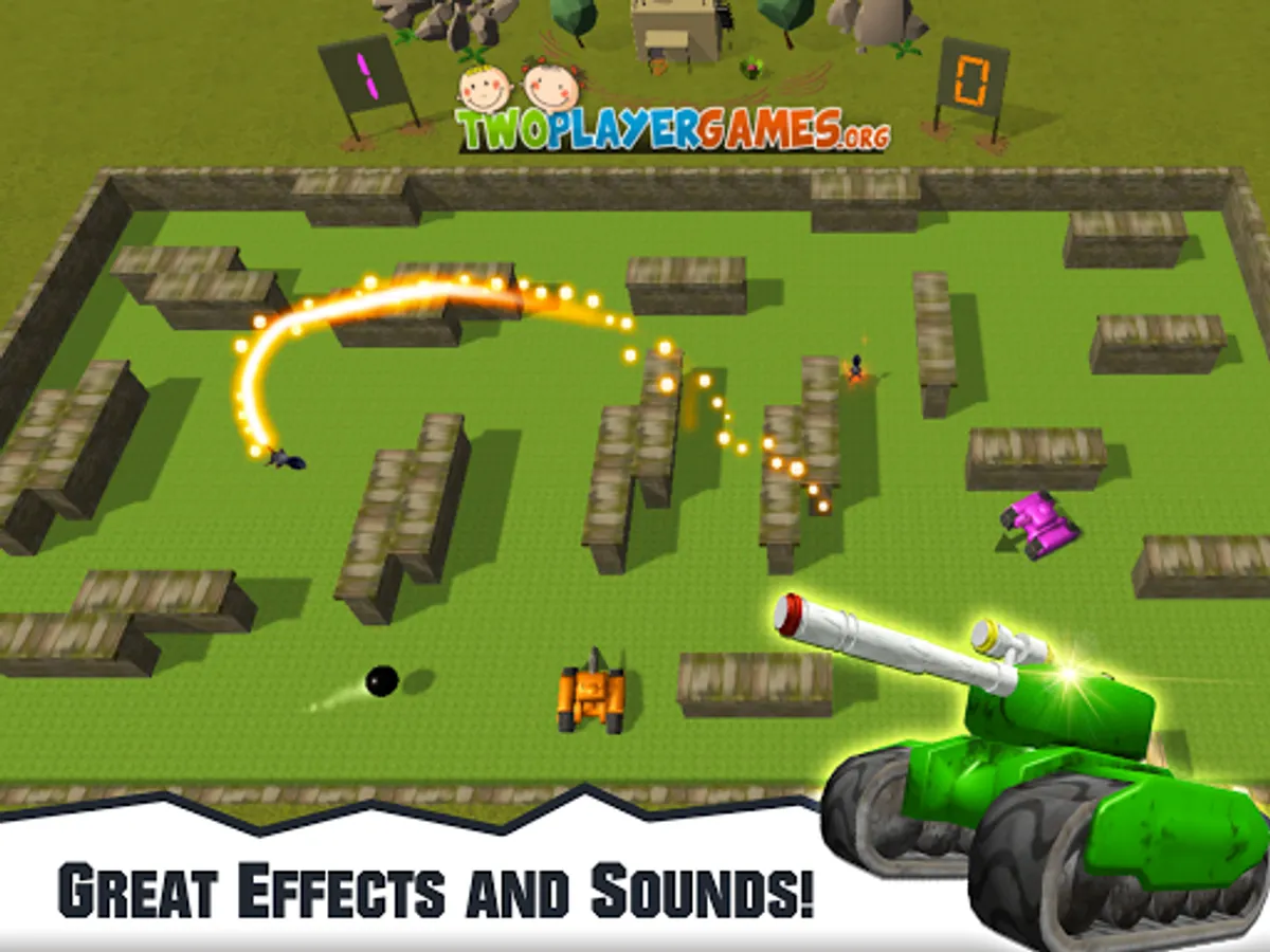 You can use labyrinth walls as your defense and take advantage of bonus on map to destroy your opponents faster in “2 Player” mode with your friends. You will enjoy this completely free to play, best tank game for 2 players!