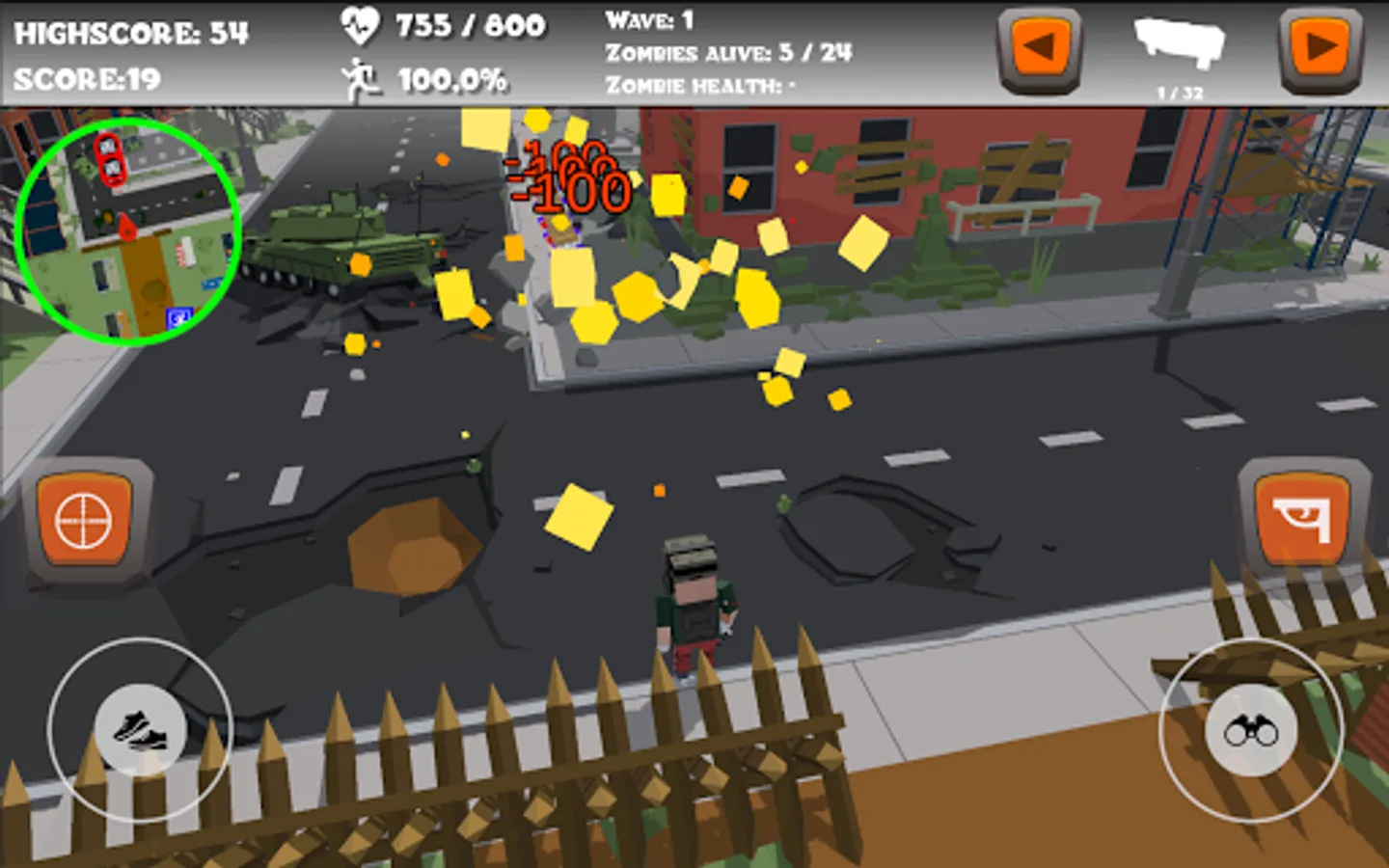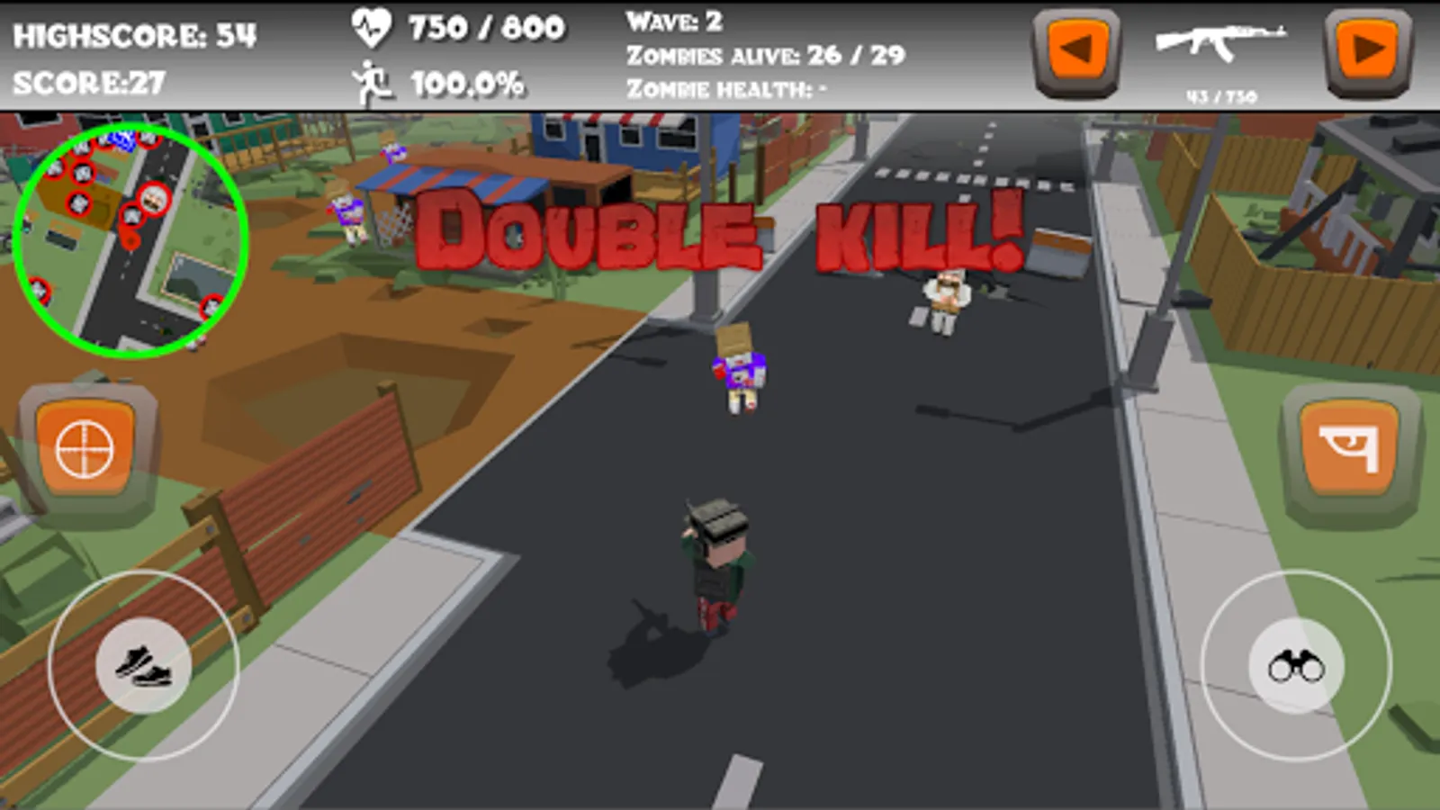 - Suicide zombie : 75 hit points and will destroy itself as he is near you. Does 100 damage (even waves, except Boss waves)