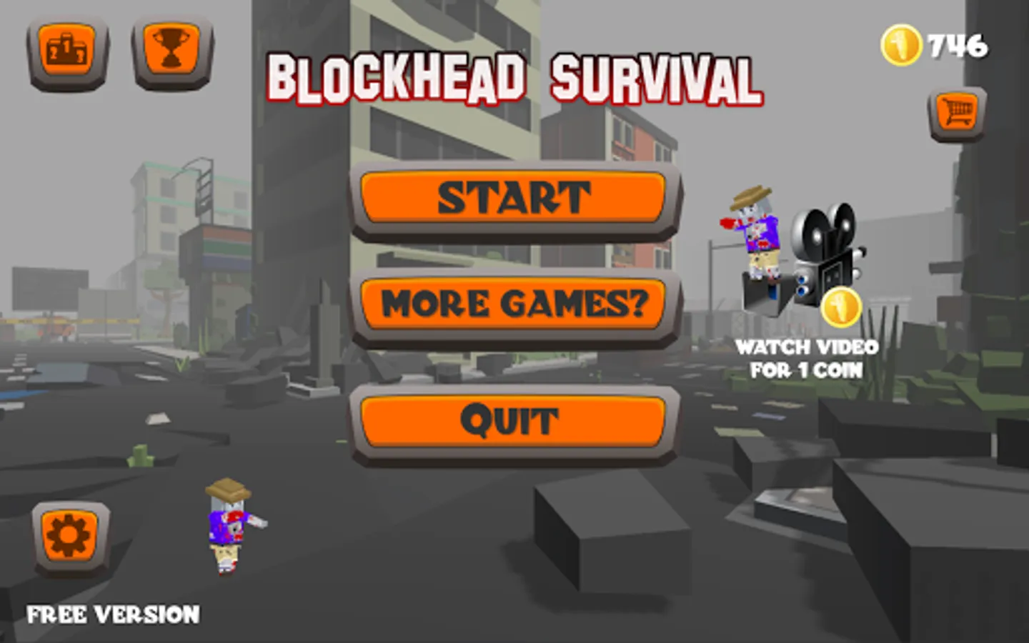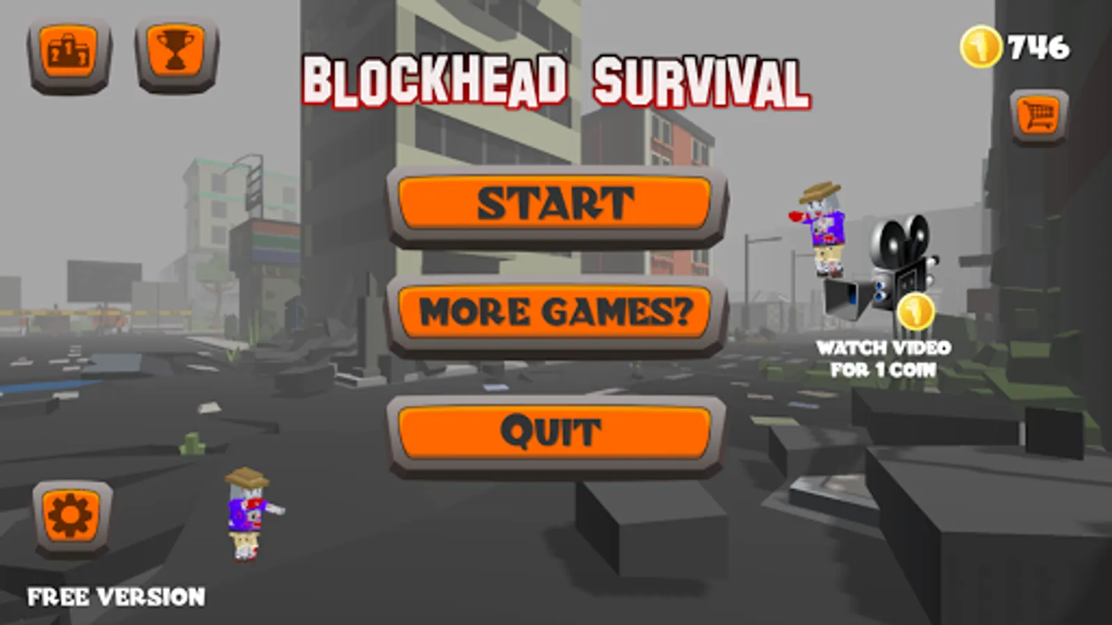 Blockhead Survival is an 3D survival game. Try to eliminate the zombies before they eliminate you! Every upcomming wave will be a lot harder to survive. There will be more zombies each wave, and they are getting faster. Earn coins during the game to buy better characters. They will come in handy to survive longer, and reach a better highscore!