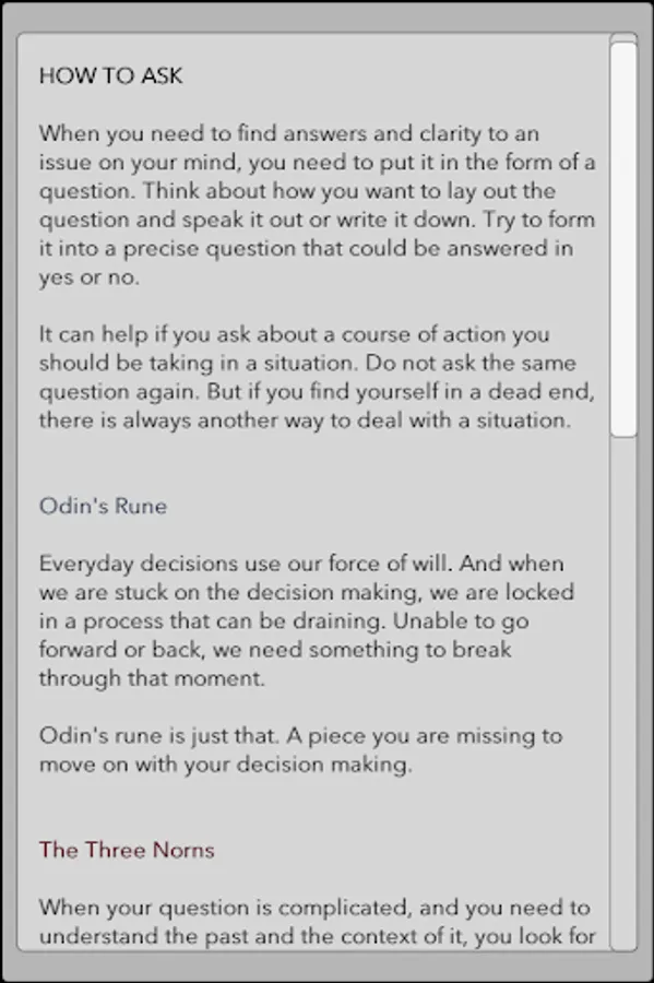 Elder Runes is an expert tool that does the runic interpretation for you. You can concentrate on the process of understanding the answers in the context of your individual questions.