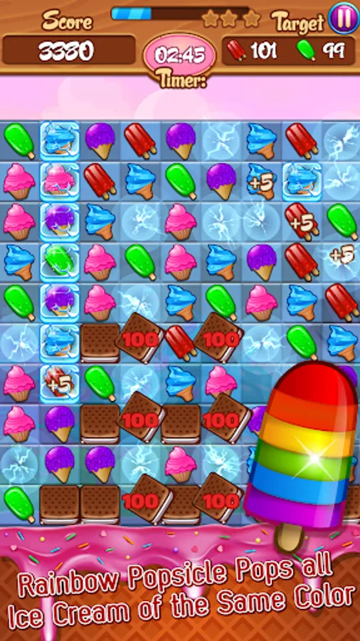 - Match 5 in an L shape to create an ice cream bomb