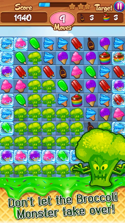 - The Broccoli Monster will take over the board if you don't kill him quickly