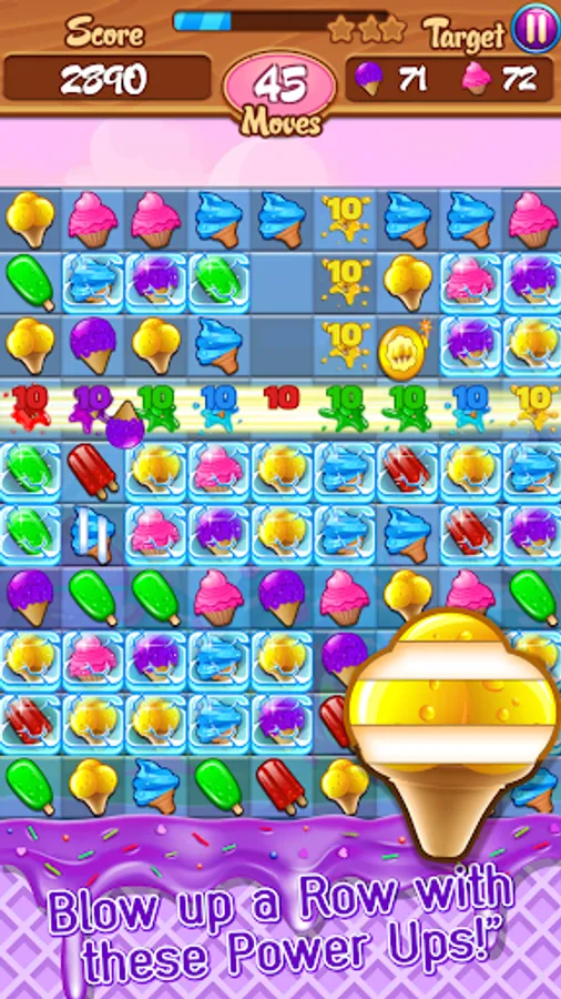 - Matching 4 or more ice cream fuses power ups