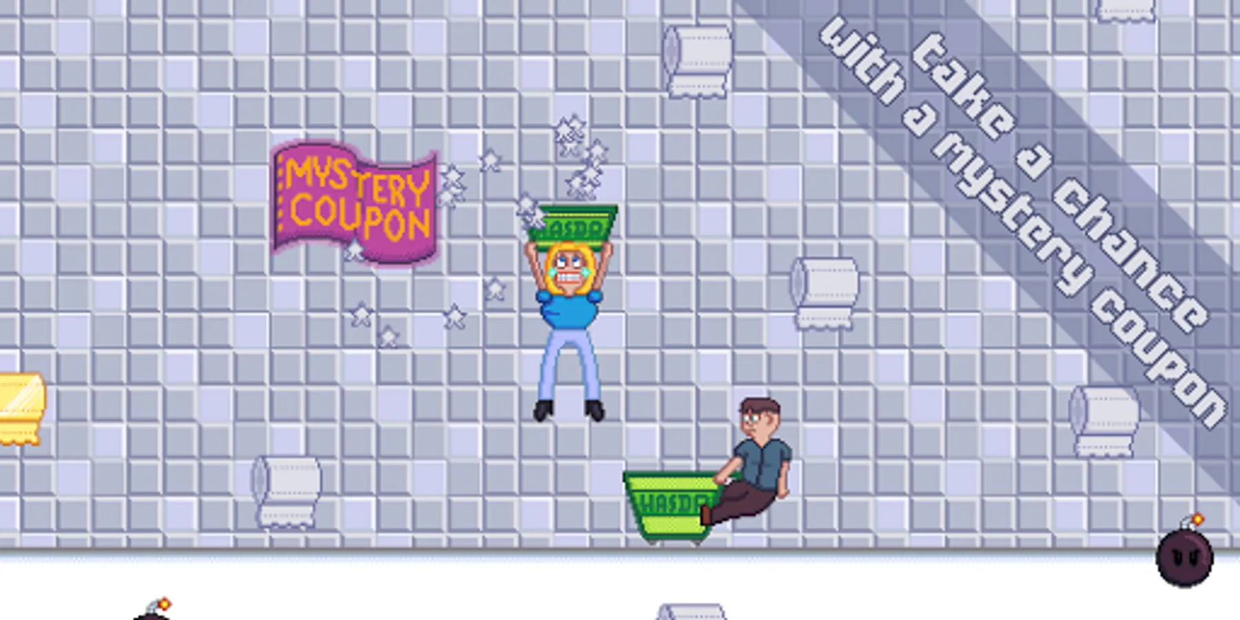 Tilt & Tap the screen to catch the falling rolls, but watch out for the bombs and other shoppers! Do you take a chance on a mystery coupon?