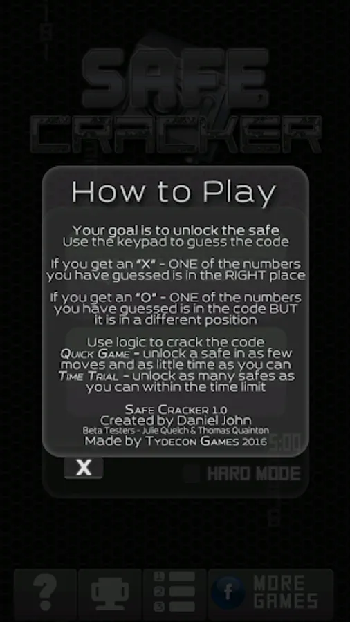 Reminiscent of the old "Mastermind" game - can you unlock the safe? Use logic to decipher the code either in a quick game or unlock as many as you can in the timed mode.