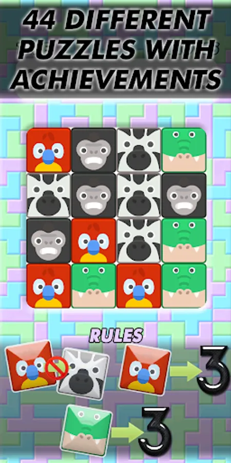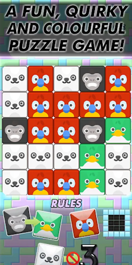 Shuffle Animals in this fun, quirky and colourful puzzle game!