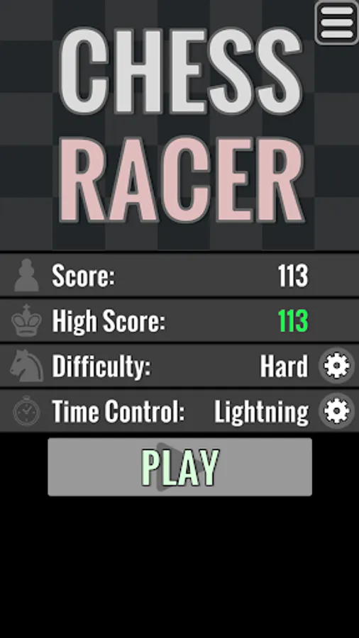 Get ready to race through the chessboard in Chess Racer! This unique game challenges you to think ahead as you strategically grab opposing pieces to earn points. With every move, you'll need to LOOK THREE STEPS AHEAD and rack up the highest score possible. Grab queens for +9 points, rooks for +5 points, bishops and knights for +3 points, and pawns for +1 point. Test your chess skills and strategy in this exciting single player game. Choose from two difficulties, Easy and Hard, and customize your game with different time controls, colors, and board styles. Download Chess Racer now!