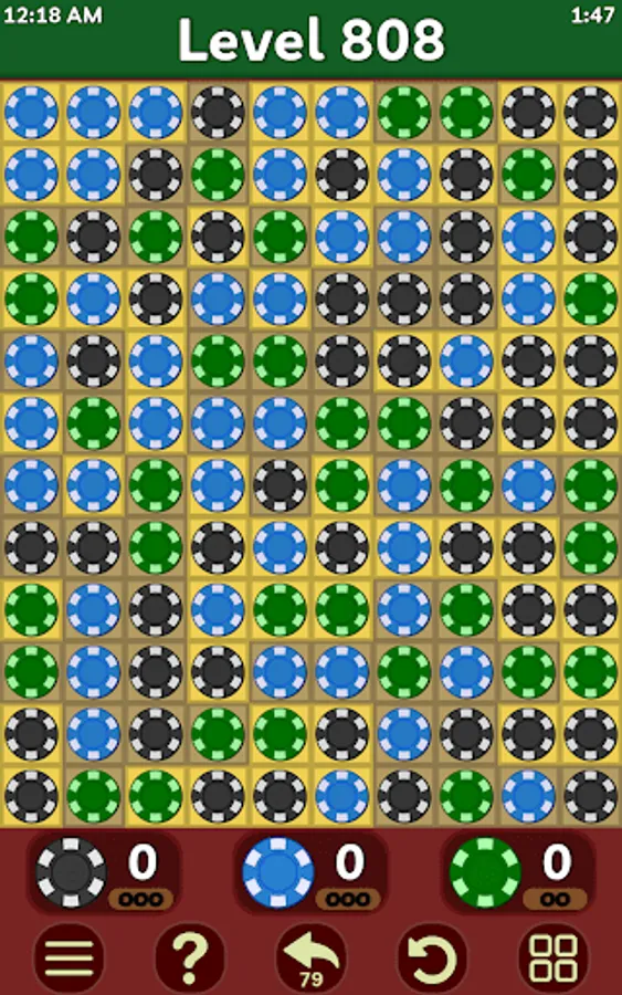 Single player puzzle game in which you need to separate tokens of the same color.