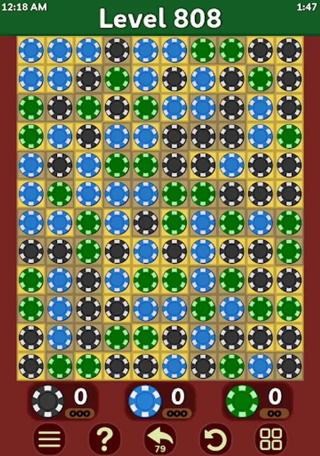 There are 1500 levels with different sizes and token types, so I hope you can find levels you like the most. Levels have multiple different solutions. Level sizes range from 5x5 to 14x14 and have two or three types of tokens.