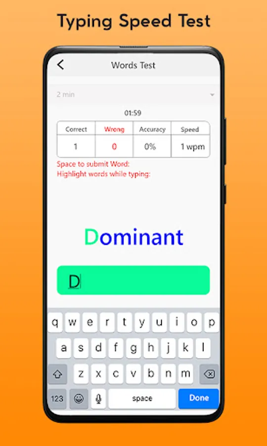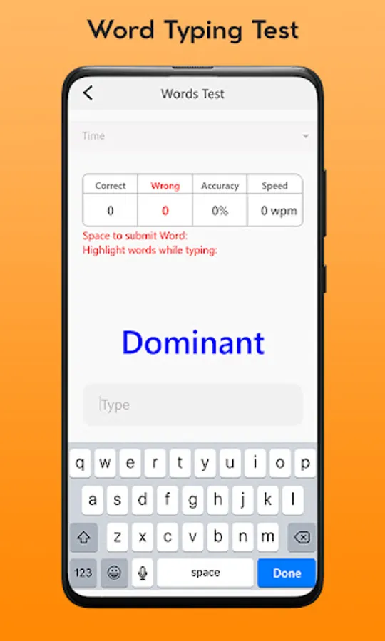 ✔️ Words Test: In typing speed test users can check and improve typing speed with words test.