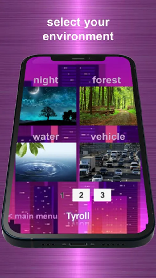 With the free and rich sound library of "Check It Out", you can choose the environment you want, then select/start your sound and feel that environment.