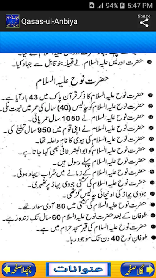Qasas ul Anbiya in urdu 1 Aisi App Hai jis mein Anbiya ki zindagi kay baary mein bhi Mukamal urdu Maloomat hai.