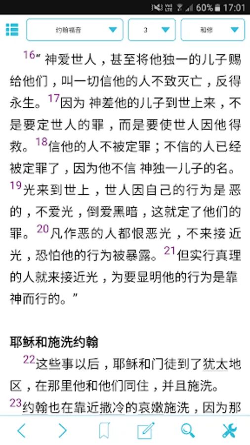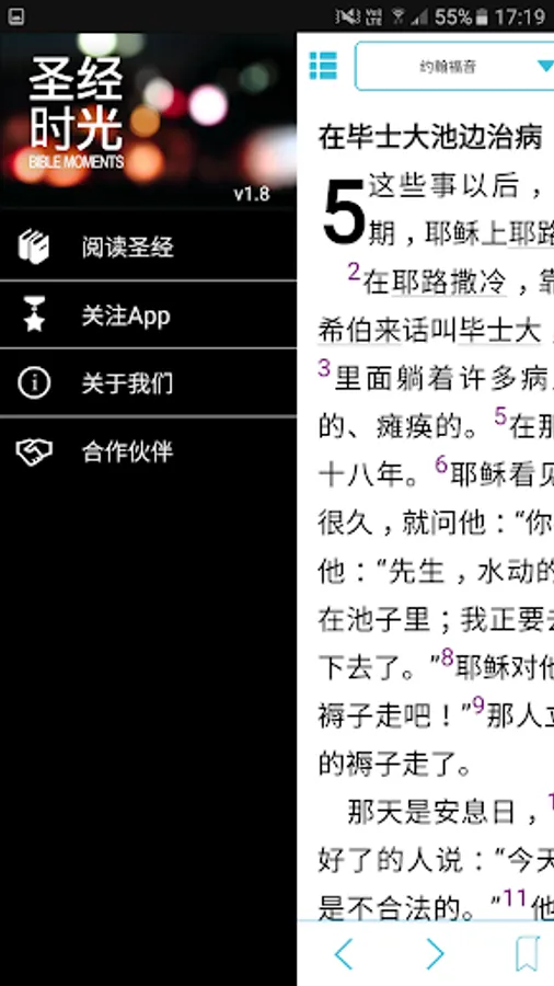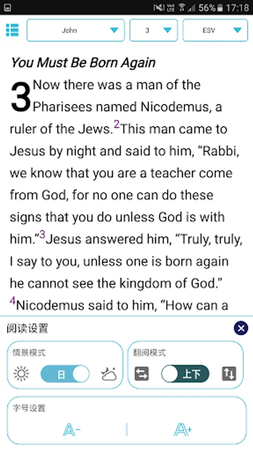 Bible Moments is a FREE Bible App that offers offline reading of the popular Chinese Union Version (CUV) and Revised Chinese Union Version (RCUV) in the Simplified Chinese language and English Standard Version (ESV). The beautiful typesetting of the Bible text closely resembles the look and feel of a printed Bible. The App has the following functions: