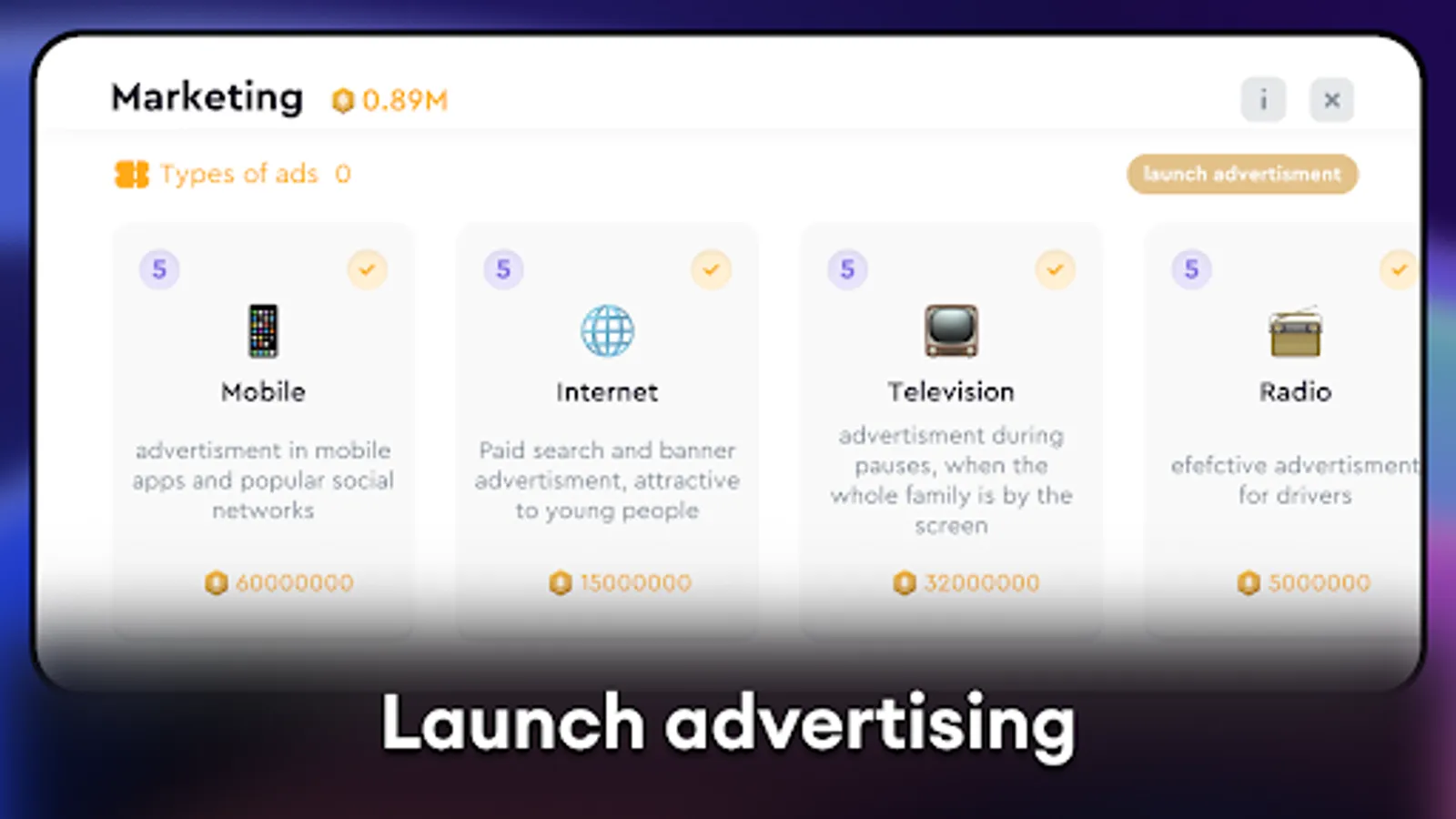 ⁃ Launch marketing campaigns, beat the competition and win the hearts of millions of users!