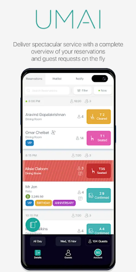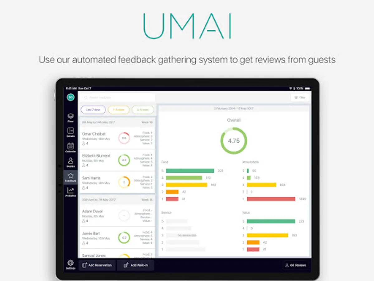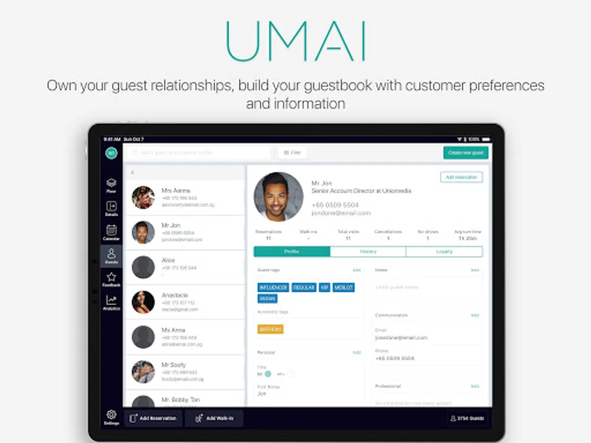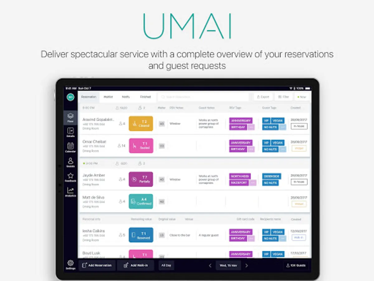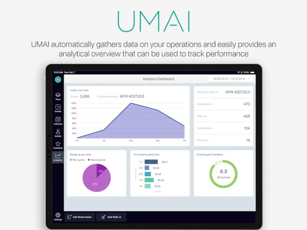 UMAI 360 is a modern & sleek one stop solution for restaurants, cafes, clubs, and other F&B outlets - Manage reservations, tables, guestbook, feedback, and view real time analytics.