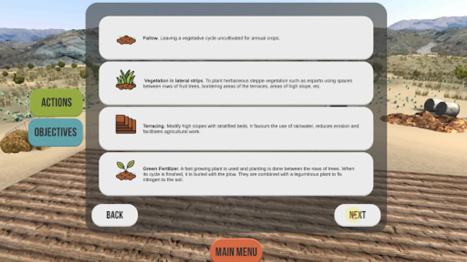 LIFE-C4 is an educational experience in Virtual Reality [compatible with Google Cardboard] and touch modes, focused on the impact of different agricultural practices on climate change. The application has been designed for the dissemination of the main objectives of the AMDRYC4 [2020] project which seeks the creation of synergies between agricultural communities, socio-economic development and care for the environment. This mobile application is part of the promotional strategy under the project, and was produced between September 2019 and October 2020.