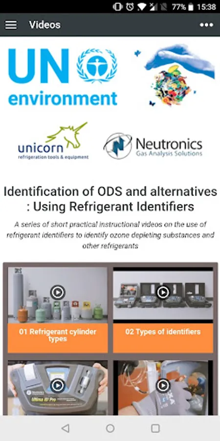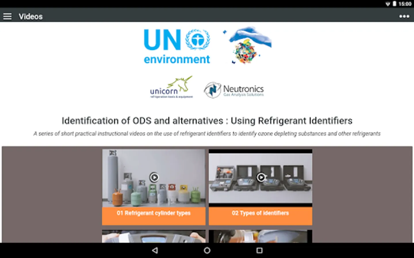 This new OzonAction video series consists of short instructional videos showing how to use and maintain a refrigerant identifier. The videos provide useful guidance on safety and best practice, understanding the difference between different identifier units, testing procedures and identification of results. It is intended for use by Montreal Protocol National Ozone Officers, Customs and Enforcement Officers as well as technicians involved in the servicing and maintenance of refrigeration and air-conditioning systems. The videos were produced by UN Environment OzonAction in collaboration with Neutronics, Inc. and Unicorn B.V.