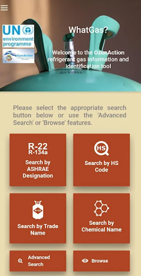The UN Environment Programme (UNEP) OzonAction WhatGas? application is an information and identification tool for refrigerant gases: ozone depleting substances (ODS), hydrofluorocarbons (HFCs) and other alternatives. It is intended to provide a number of stakeholders, including customs officers, Montreal Protocol National Ozone Officers and refrigeration and air-conditioning technicians with a modern, easy-to-use tool that can be accessed via mobile devices to facilitate work in the field, when dealing with or inspecting ODS and alternatives. If the user requires additional information or assistance in identifying a refrigerant gas they are inspecting or that is described in the relevant paperwork, this can be easily obtained by consulting the application.