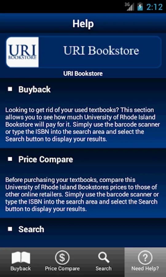 Look up URI Bookstore's Buyback prices, compare their Textbook pricing, and search their merchandise and tradebook catalog.