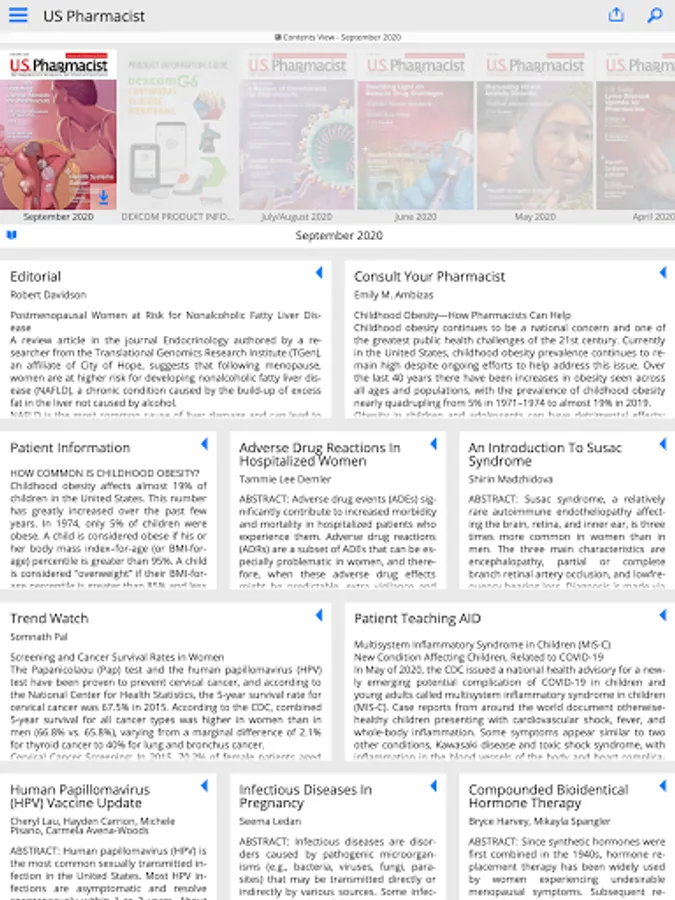 The U.S Pharmacist App features access to the must have feature articles and departments in the current and archived issues of the industry's number-one read journal, as well as CE exams with convenient online grading. The App also features links to the monthly electronic Newsletter, indispensable Patient Teaching Aids, digital editions of U.S. Pharmacist and supplements, pharmacy associations, colleges, government agencies, and health-related organizations. Visitors can even click their way to a new job through the Classifieds/Career Center!