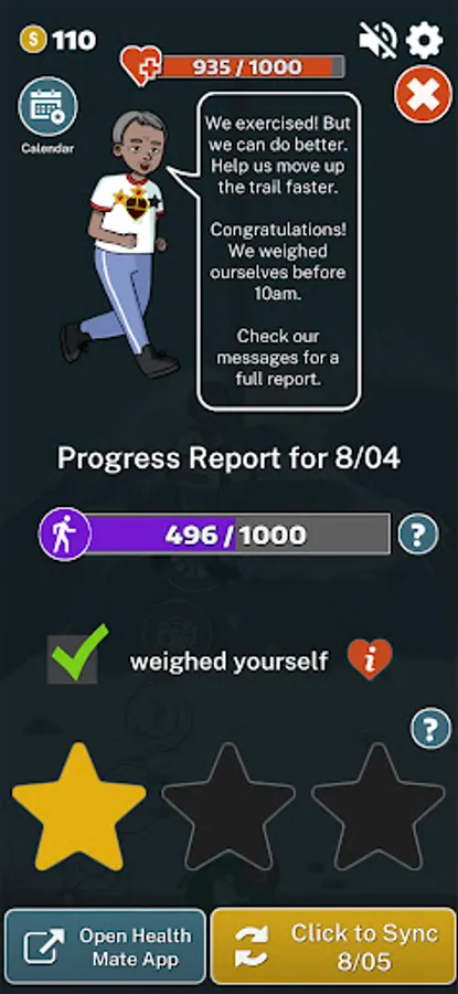 Record physical activity and weight data using the Withings Health Mate app, and then use this app to sync your data and play the game.