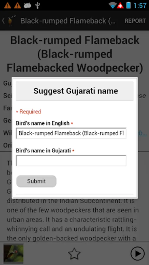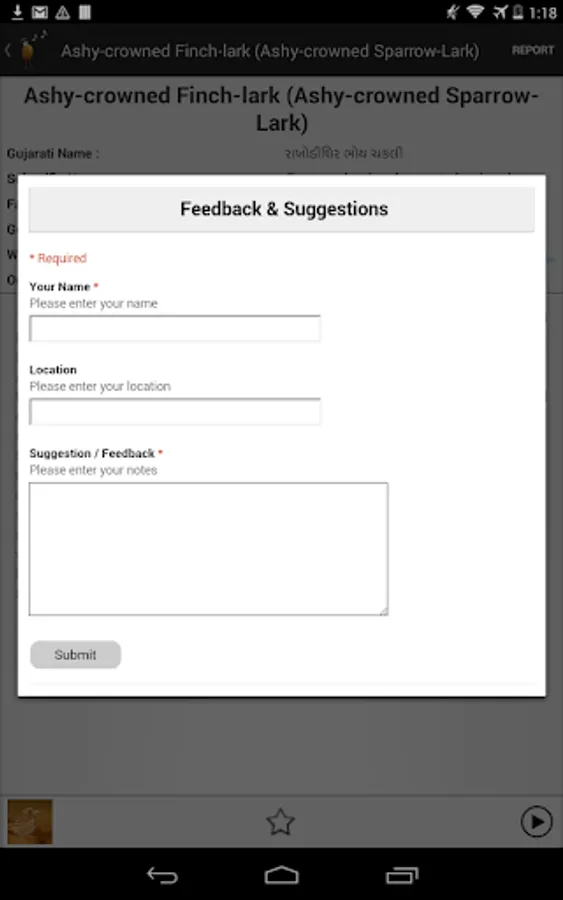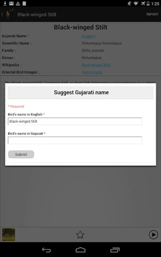 Its not a typical bird call application, it has total 309 birds calls with information and few bird's gujarati name is also mentioned in details page. We will add images of birds soon and few calls which are missing right now.