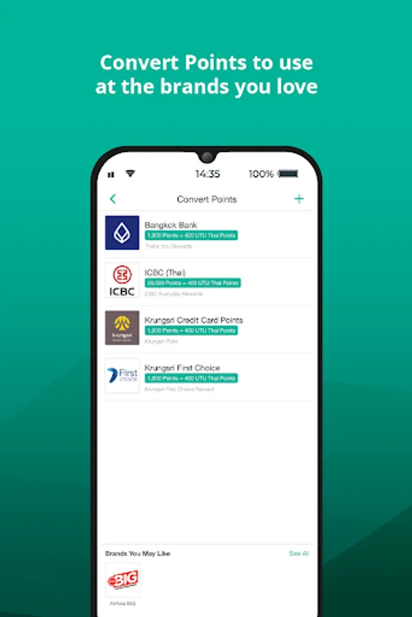 utu seamlessly brings global rewards to your fingertips, with over 24,000 outlets in Thailand. Earn points at Zara and redeem them at Starbucks, convert utu Points into AirAsia BIG Points or be a friend and give the gift of points instantly.