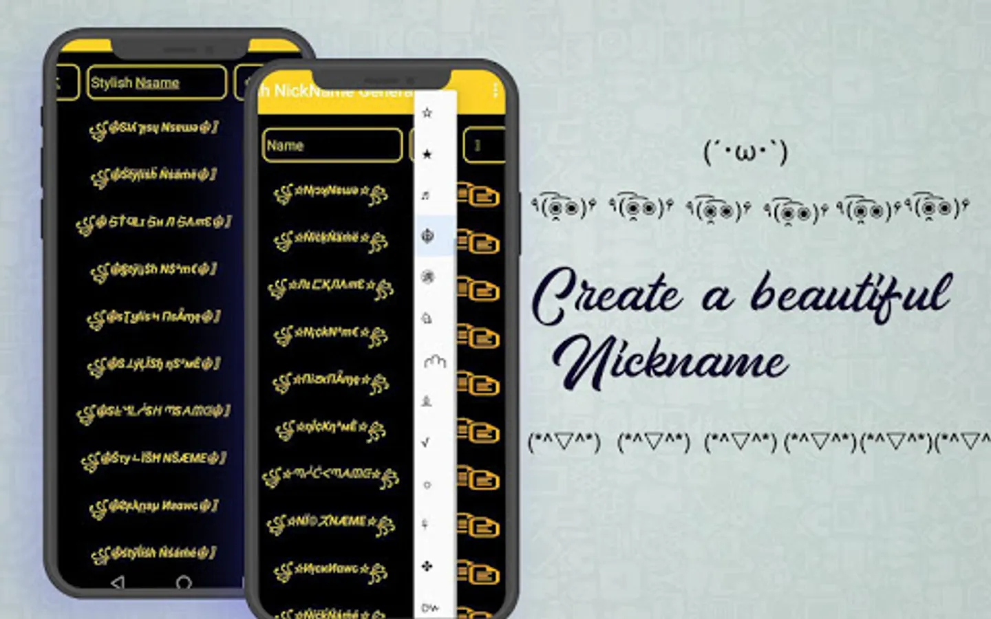 Stylish Nickname generator - Fantasy Cool Text Symbol consists of 1000+ Styles Nickname maker frame for Free. through this application, you can make a stylish Nicknames, Pet Names, Your Friends Names, your Family names in different text, Font and style. this application has a user-friendly user interface and very simple to use.