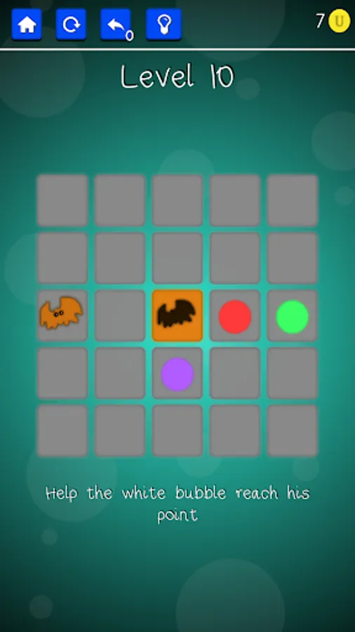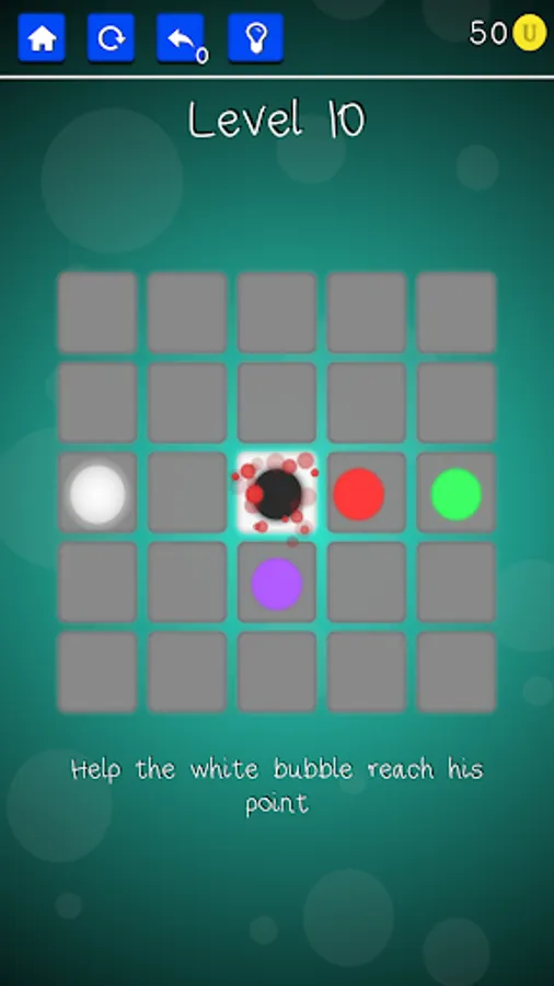 In order to achive the goal, you need to progress the bubble by moving up and down, right and left (but NOT diagonally).