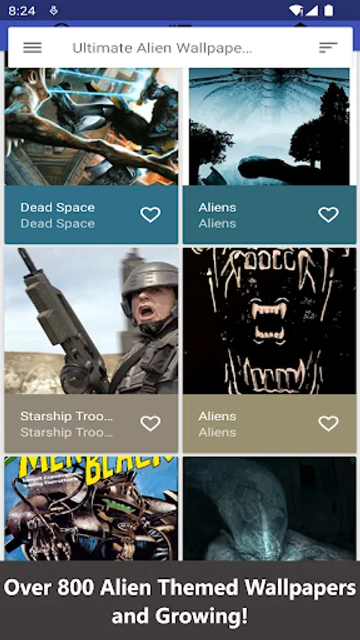 This Free Ultimate Collection of Alien Wallpaper App is a work in progress with new content always being added, covering alien wallpapers from Aliens to starship troopers to District 9 Aliens. This Alien wallpaper collection has over 800 alien wallpapers and alien backgrounds, with more Aliens Wallpapers planned like Area 51. Everyone loves the aliens xenomorph wallpapers and the general Alien theme for wallpapers and lock screens. District 9 is a gritty action alien movie with hopefully a sequel soon. Starship Troopers is a great alien series with the Starship Troopers killing as many Alien bugs as possible. Dead Space is a great horror Alien game with some amazing Dead Space Wallpapers! More Alien Wallpapers are coming with such as the Area 51 aliens!