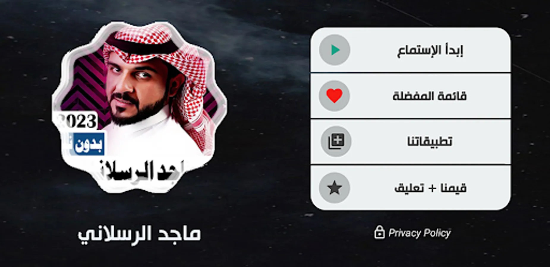 All chelated Majed Al Raslani without Net 2023 An application that contains all the new chelated songs of Majid Al Raslani 2022 - 2023 and all the old songs of Majed Al Raslani, the most listened to without the net, with high sound accuracy. Majid Al Raslani's chelated application without Net 2023 contains many exclusive features, including: the feature of shooting a video and listening to all Majid Al Raslani's chelated songs, the feature of repetition and random transmission between chelated, elegant, distinctive and easy-to-use design, works without the Internet with the same purity of sound and high accuracy. The Majid Al Raslani 2023 chelated application without the net also features many types of hail, including: enthusiastic chelated, sad chelated, patriotic chelated, love chelated, gram chelated, reproach chelated and many of the most beautiful chelated by the artist Majed Al Raslani. Majed Al-Raslani is a Saudi artist, and he has a great mediator in the field of poetry in the Arab world. The artist Majed Al-Raslani's channel has more than 1.27 million subscribers and more than 460 million views on his YouTube channel. Download the Majed Al Raslani chelated application without the net 2023 and enjoy the most exclusive and new songs of Majed Al Raslani 2023 without the Internet. New Majid Al Raslani chelated songs have been added: Majed Al Raslani - A grain of madness 2022 Majed Al Raslani - What am I Saudi 2022 Majid Al Raslani - Hanna Al Nashama 2022