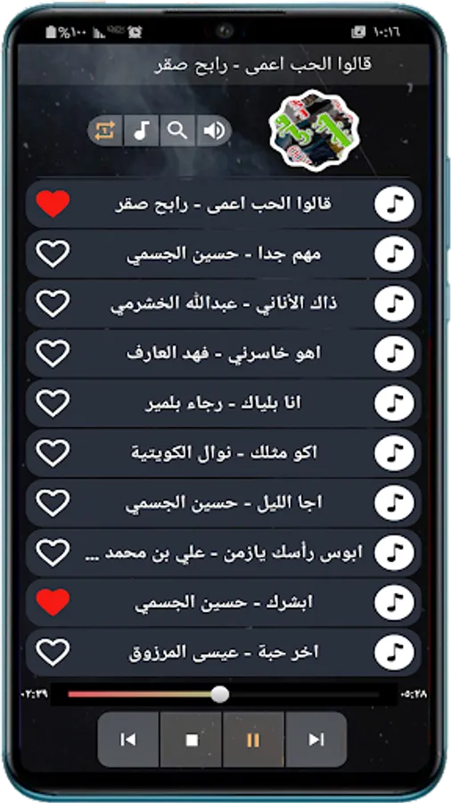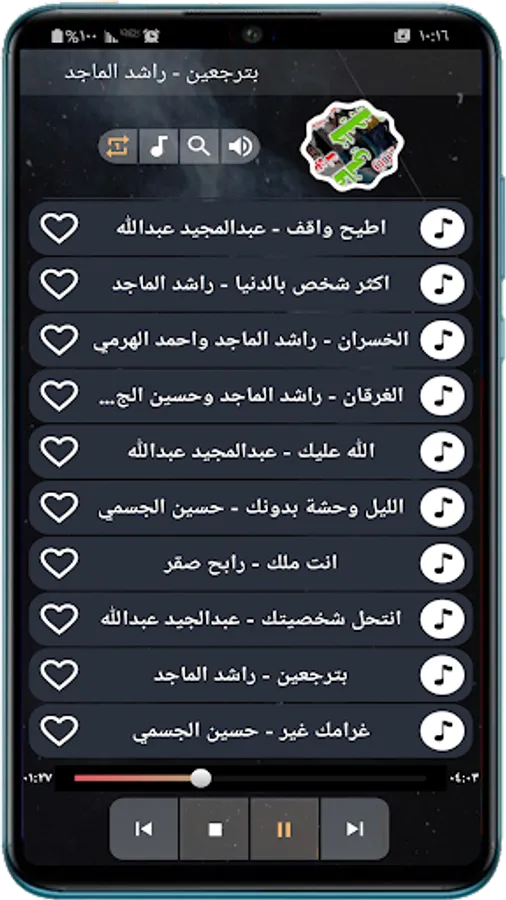 We present to you an application that includes the most famous, beautiful, and best Gulf works and songs without the net for a group of Gulf artists such as Nabil Shuail, Muhammad Abdo, Rabeh Saqr, Aida Al-Minhali, Nawal Al-Kuwaiti, Rashid Al-Majed, Abdul-Majeed Abdullah, Shamma Hamdan, Muhammad Al-Shehhi, Hussein Al-Jasmi, Muhammad bin Ali, Abdullah Al-Khashrami, Ahlam Al-Shamsi, Badr Al-Shuaibi and other Gulf artists With the continuous update of various new works and songs 2023, where you can listen to the latest Gulf songs as soon as they are released through this application.