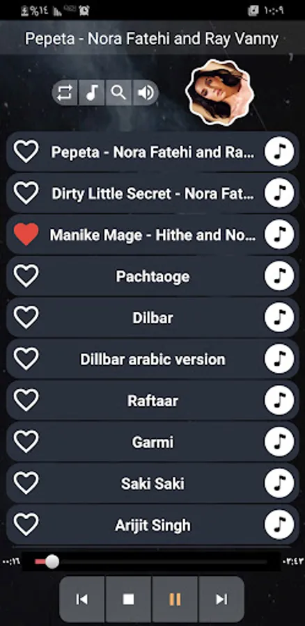 Nora Fatehi songs without Net 2023 An application that contains all the songs of the artist Nora Fatehi 2022 - 2023 and all the old songs of the artist Nora Fatehi, so that all Noura Fatehi songs without the net are immediately added to the application as soon as they are released. The application of Noura Fatehi 2023 songs without the net is also distinguished by many features such as a distinctive, elegant and easy-to-use design, in addition to all the new and exclusive songs of Nora Fatehi 2023. It works without the Internet with the same sound accuracy and very high purity when listening. Time and many exclusive features by applying Noura Fatehi songs without Net 2023. So that the artist Nora Fatehi is considered a Canadian dancer, model, actress, singer and producer, who is famous for her work in the Indian film industry. She has appeared in Hindi, Telugu, Malayalam and Tamil films. She made her Bollywood debut in Roar: Tigers of the Sundarbans. She gained popularity in Telugu cinema by doing item numbers in films like Tempered, Baahubali: The Beginning and The Kick 2, and also starred in two Malayalam films, Double Barrel and Kayamkulam Kochunni. In 2015, she participated in the reality TV show Bigg Boss 9 and was fired on the 84th day. In 2016, she participated in the reality TV dance show Jhalak Dikhhla Jaa. She was featured in the Bollywood movie Satyamev Jayati where she was seen in the reworked version of the song "Dilbar" which crossed 21 million views on YouTube in the first 24 hours of its release, making it the first Hindi song to have such numbers. in India. She also collaborated with Moroccan hip-hop group Fnaïre to release an Arabic version of the song Dilbar.
