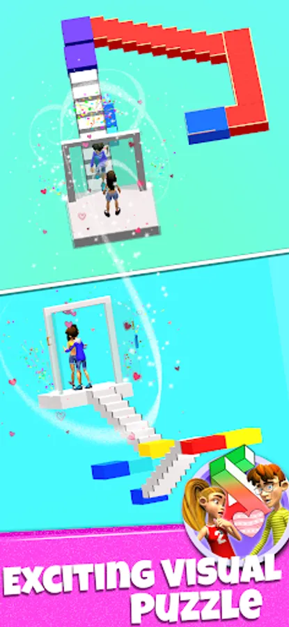 Two lovers waiting to meet and you have to make sure they do an illusion puzzle. Solve visual puzzles and match stairs so the boy can reach his lover, and avoid obstacles standing in between so you don't get caught.