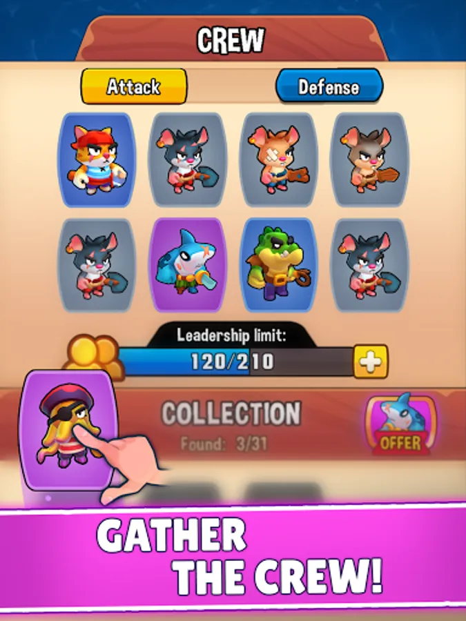 A lot of animal pirates with their own special abilities that will help you win.