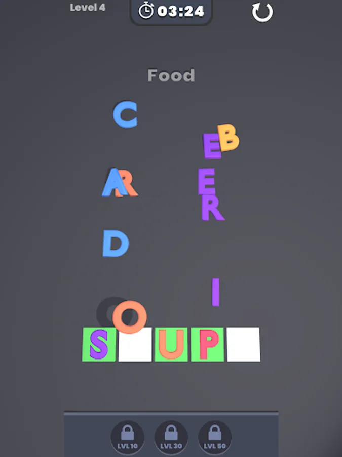 Do you love word games? Then you will love Letter Match 3D. In this fun and engaging puzzle you sort letters and find the words from the stack. Can you find all the words before the time runs out? Start playing, today! :)