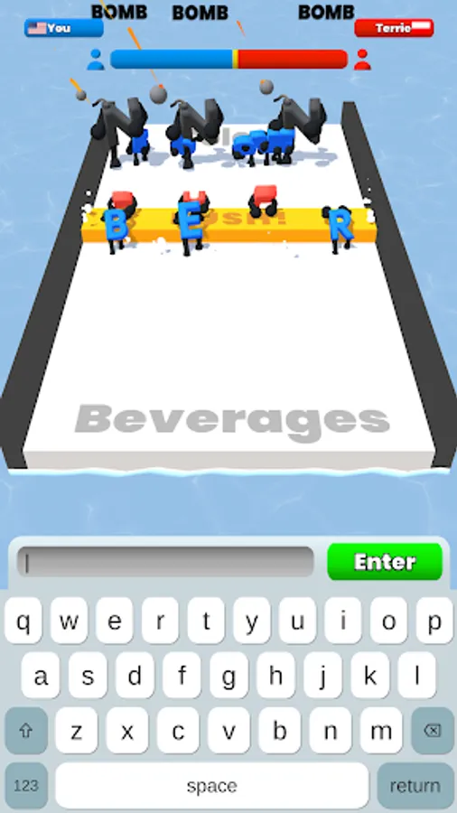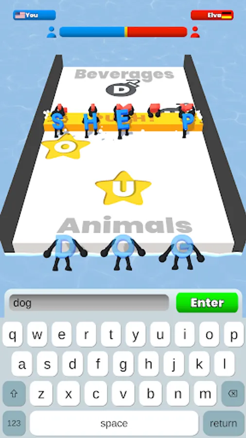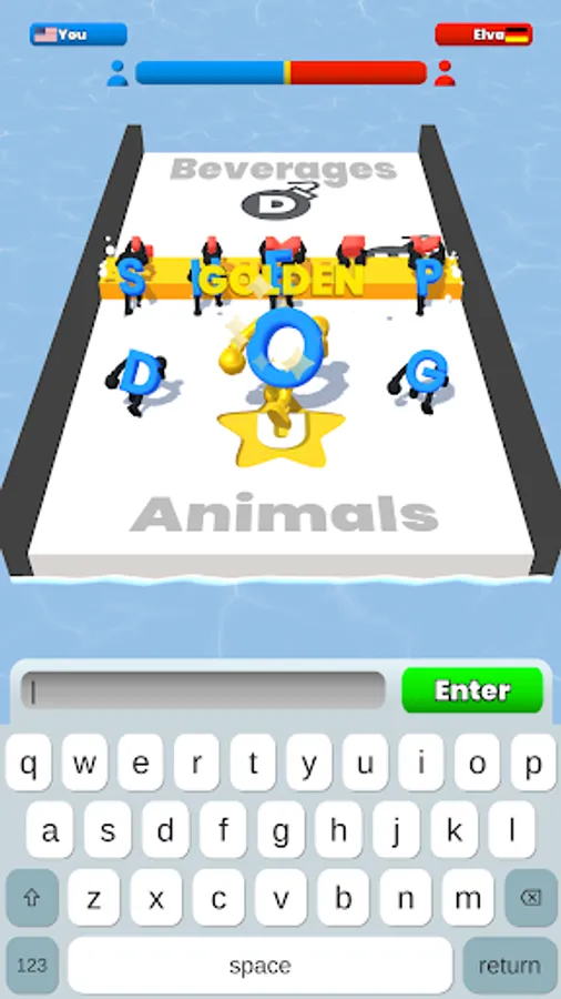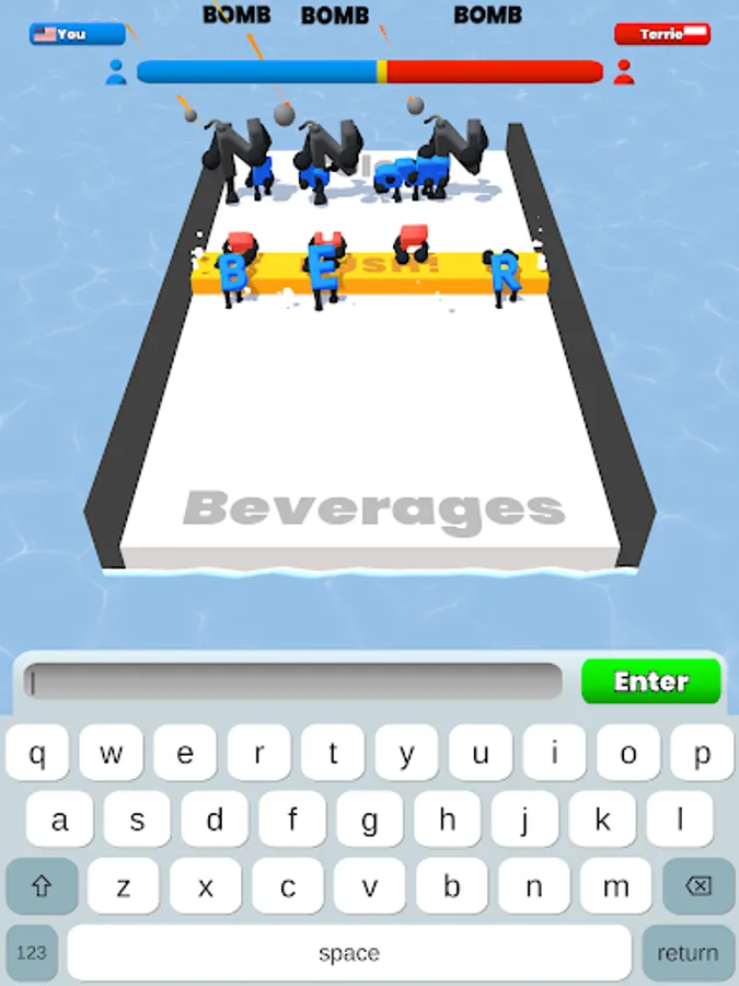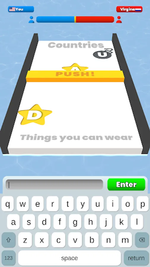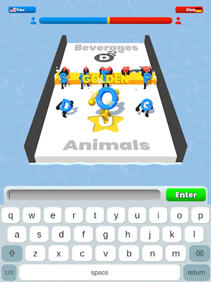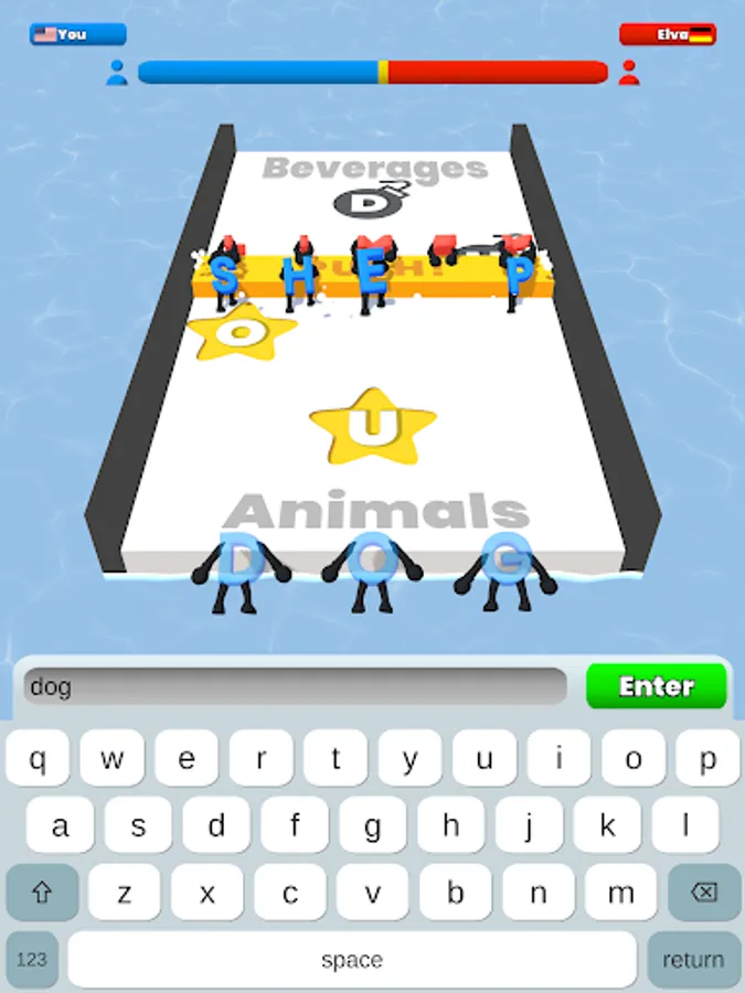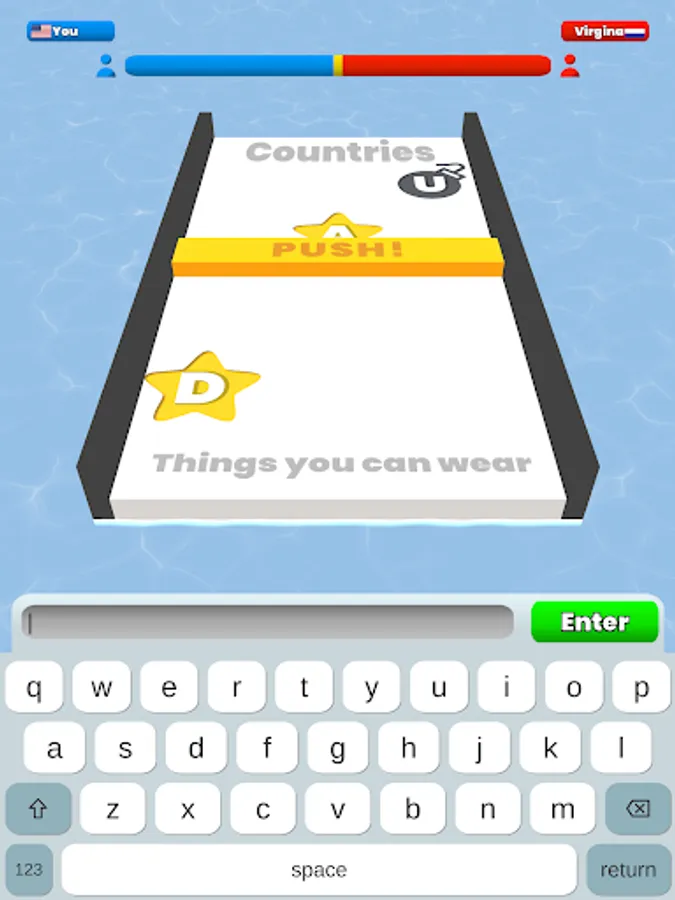 Use your opponent's word category to go behind enemy lines and destroy their pushing letters! May the fastest typer win!